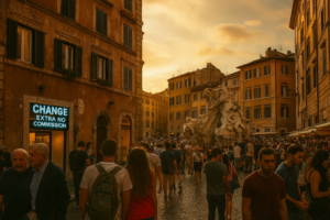 ローマ市内の観光地近くの両替所(トレビの泉付近)
